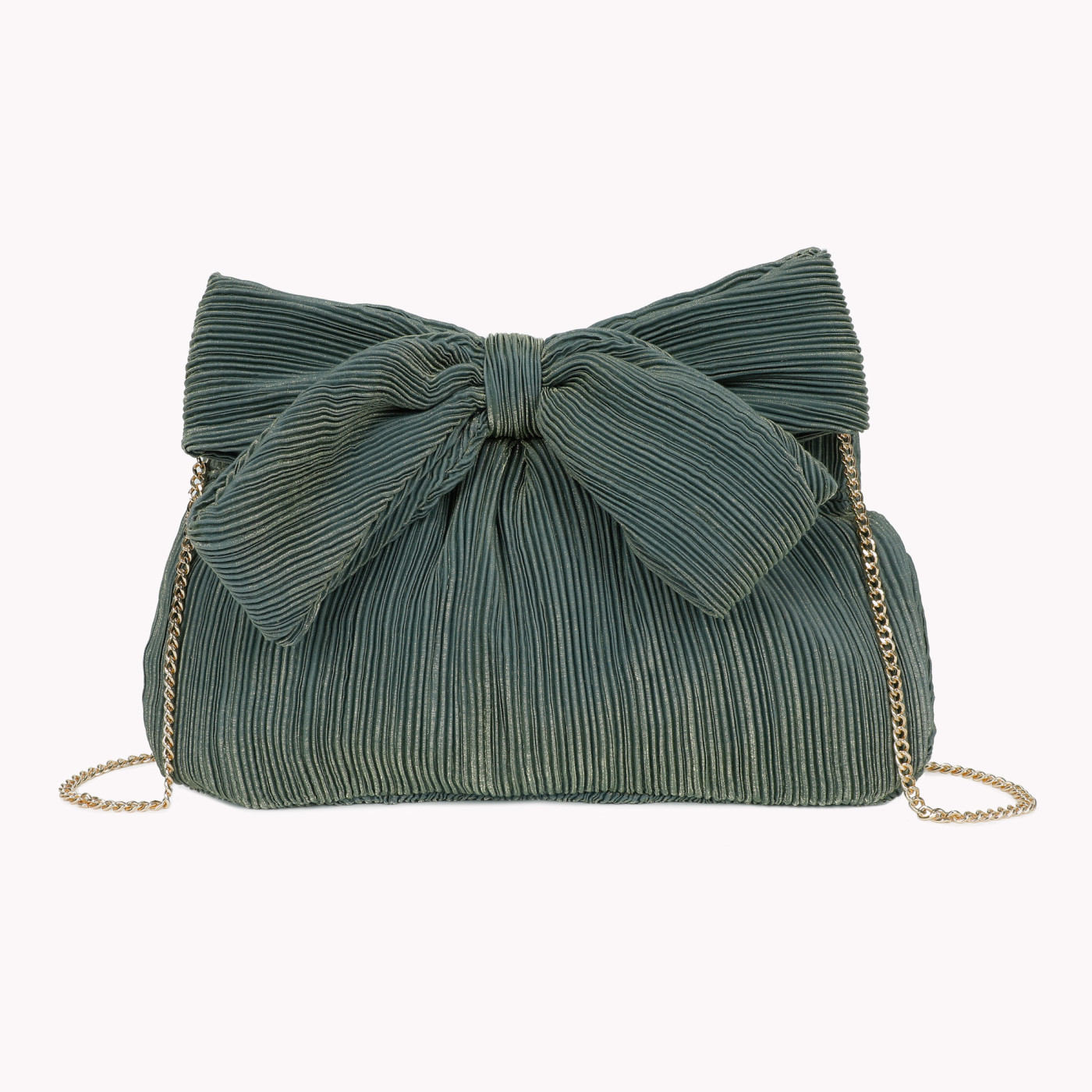 Bolsa de festa com textura e detalhe laço COC Bags. Dispõe de alça tiracolo em corrente e fecho de íman. Dimensões cm: 31x2x16 (CxLxA)