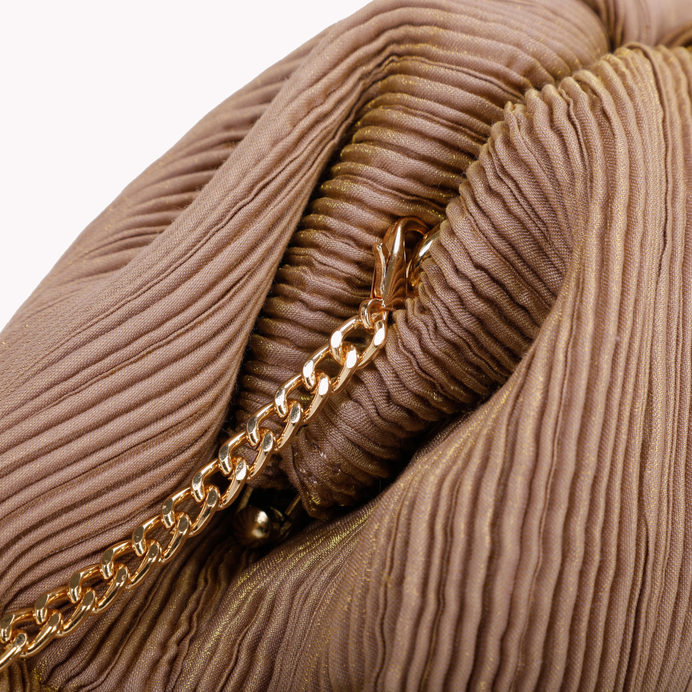 Bolsa de festa com textura plissada COC Bags. Dispõe de alça tiracolo em corrente e fecho de íman. Dimensões cm: 31x9x16 (CxLxA)